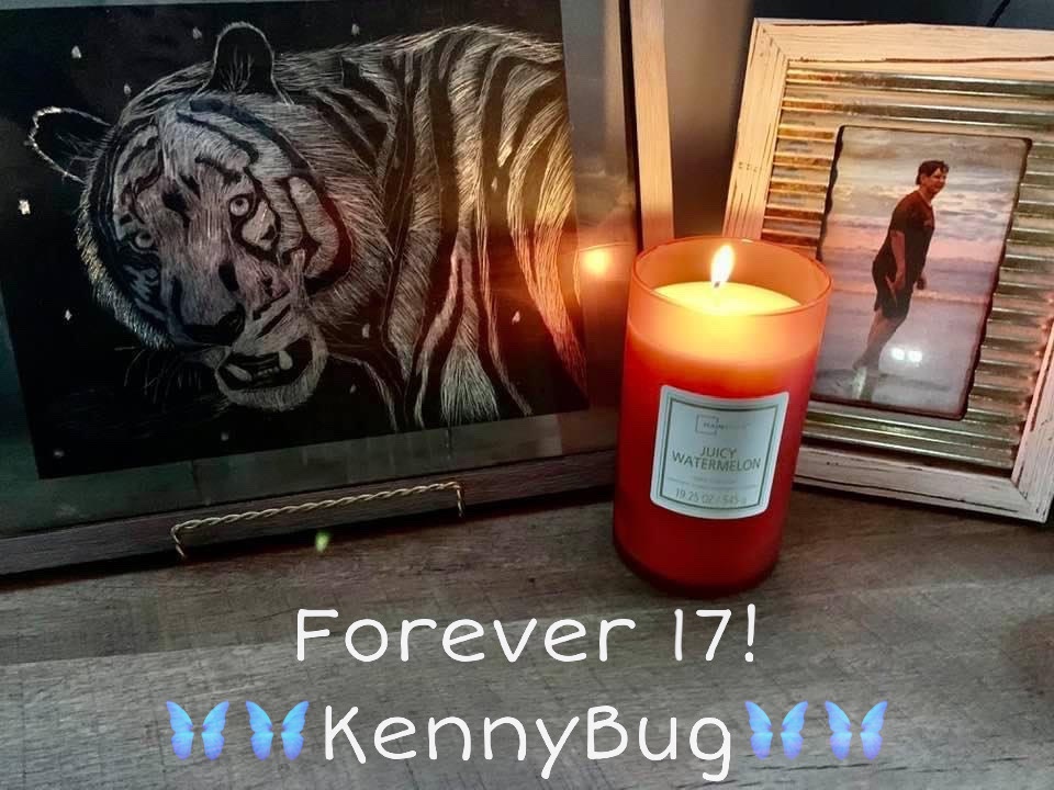 My deep grief immediately had me searching, urning for signs from Kenny. I desperately needed to know he was ok and I wanted to know he could hear me. My cries, my prayers, my wishes!! I became frustrated.. it seemed like everyone else was getting them but me. I remember one night crying so hard, my eyes were so swollen and blurry, the room was dark and I was just talking to god. “Please God let me know our Kennybug is ok!” I hung my head and sobbed. When I raised my head, I dried my face and tried to focus my eyes, it was then that I saw the outline of our son. Kenny was standing at the foot of our bed. He looked concerned for a second, but then he smiled his wonderful smile as if to say to me with just a look “ Momma, I’m here. I see you so sad, but I want you to be ok.” I didn’t say a word, it was silent. After a few minutes I squeezed my eyes tight to refocus my vision again and Kenny wasn’t there when I opened them again. I remember feeling a calmness come over me. My tears dried up, my vision was clear and the panic I had been feeling had subsided. Believe it or not that night I was able to lay down and go to sleep without tears soaking my pillow.