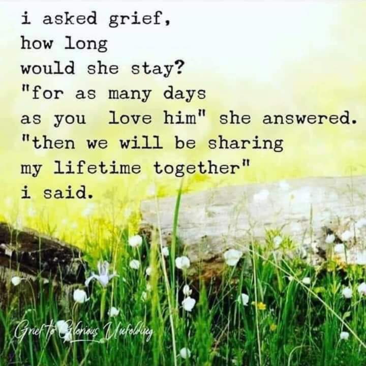 Grief is not a state of mind but a heart full of love, a love that never deminishes. Therefore grief will always be a part of me. And I’m ok with that!