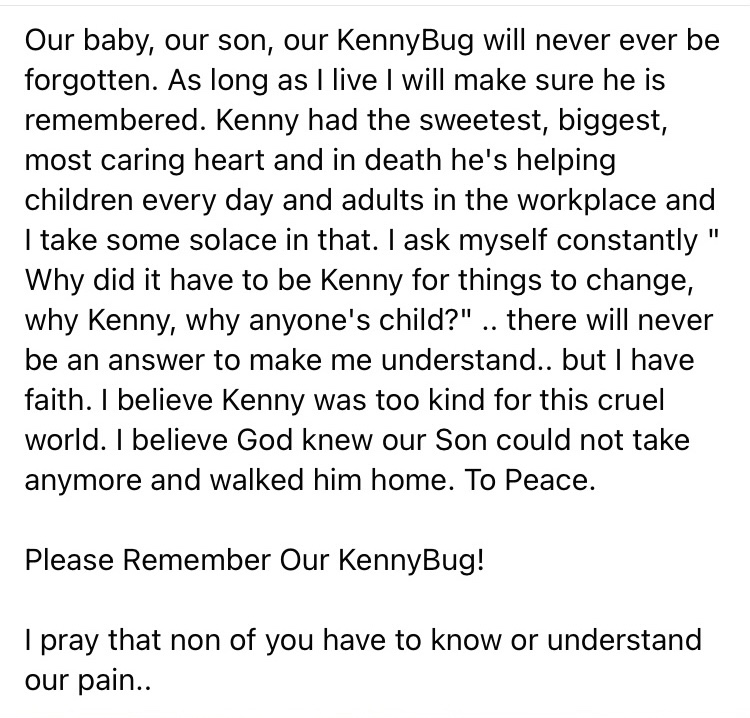 Love, Angela, KennyBug’s Momma! 🦋 Remember our son today and everyday! Be Kind! It’s Easy! 🦋